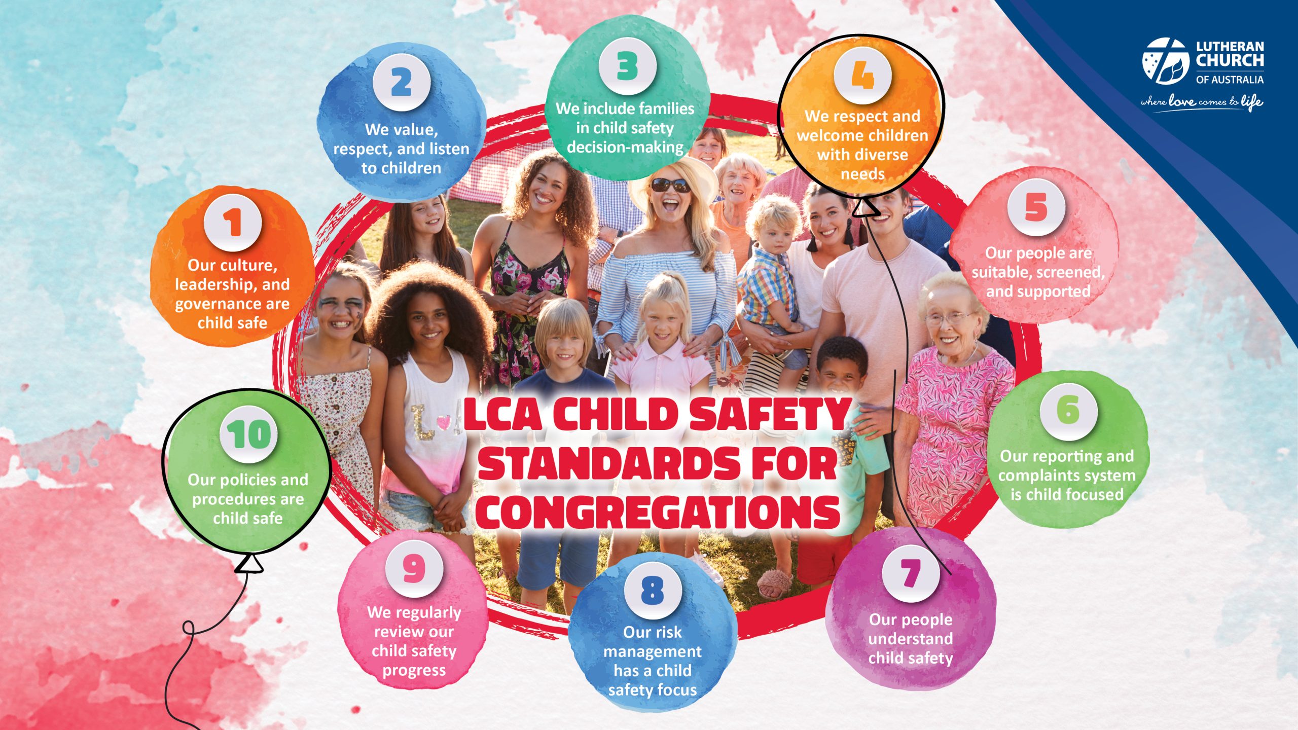 The Lutheran Church of Australia (LCA) is committed to providing a safe church environment for children and young people. The LCA acknowledges that children are a precious gift from God, with special vulnerabilities, that they require nourishment and nurture in their spiritual development and that they are to be protected from all forms of abuse.